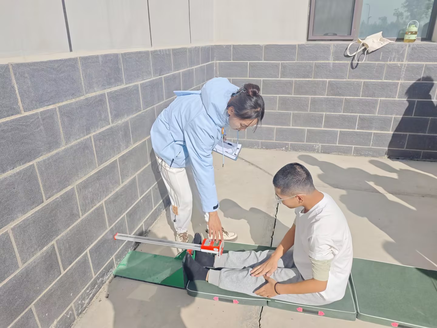 公共基础学院体育教师使用专业检测设备集中统一时间对全校学生进行体测,确保了体测结果的准确性和科学性。测试项目有身高、体重、肺活量、坐位体前屈、引体向上(男)、仰卧起坐(女)、立定跳远、50米、800米(女)、1000米(男)等。