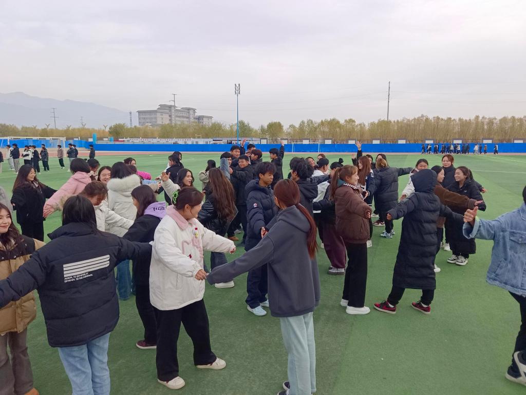 体育教师们带领学生在操场上进行给你一个大拥抱,大家都在寻找着拥抱的对象,然后紧紧地拥抱在一起。大家一致认为,问候是一种简单而又有力的交流方式,可以打破冷漠和疏远,拉近人与人之间的情感距离。