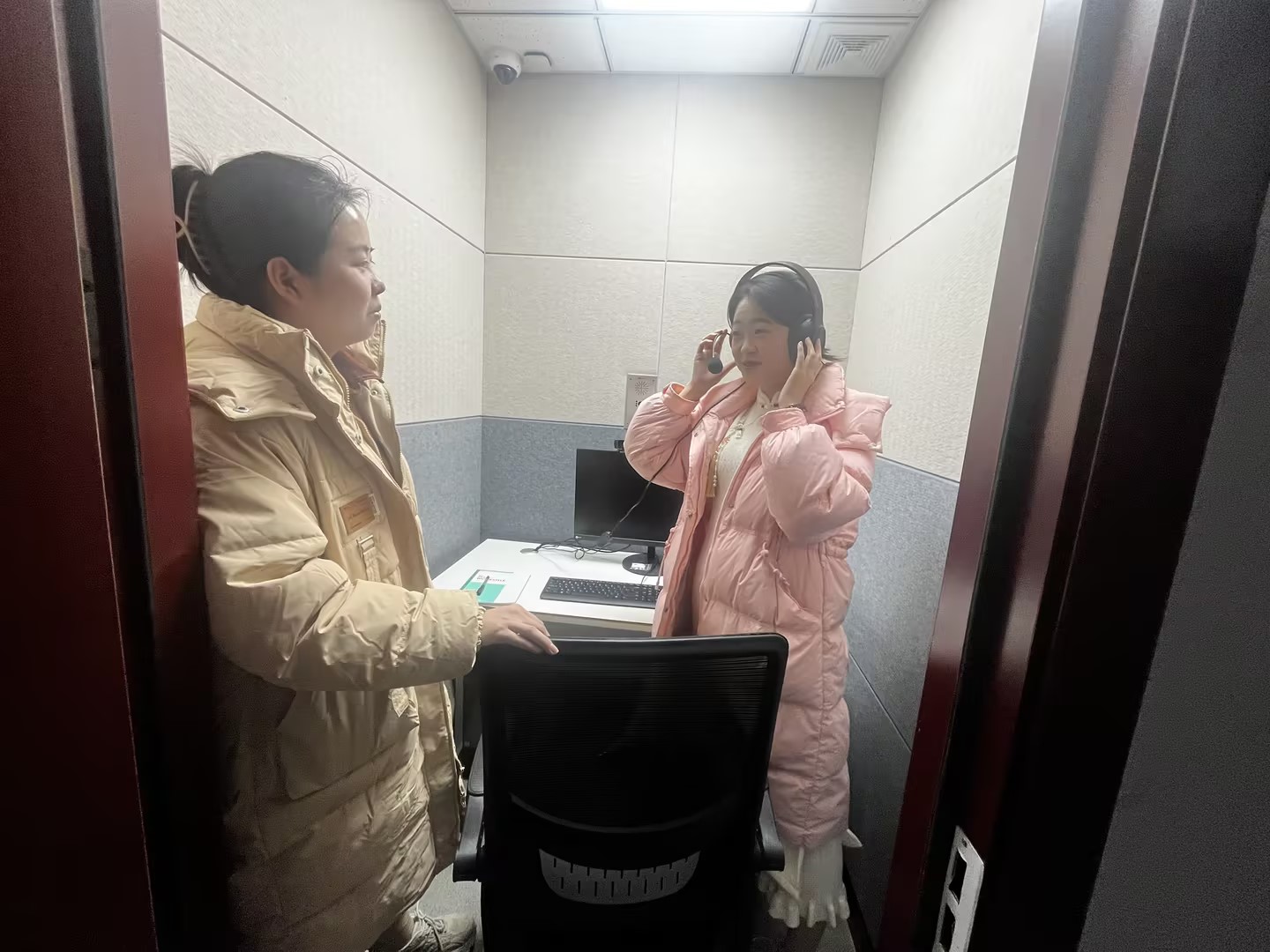公共基础学院负责人带领语文教研组教师对普通话水平测试站进行了交接和验收。大家实地查看了测试站的考务办公室、候测区、信息采集区、备测区、测试区等各功能区,检查了测试站的设备配置和运行情况。在交接和验收的过程中,飞天伟业有限责任公司负责人详细讲解了测试站具体操作流程和注意事项并进行了现场操作,相关业务工作人员学习了如何操作测试软件、调整测试设备、处理测试数据等,为后期顺利开展普通话测试工作做了充足的准备。