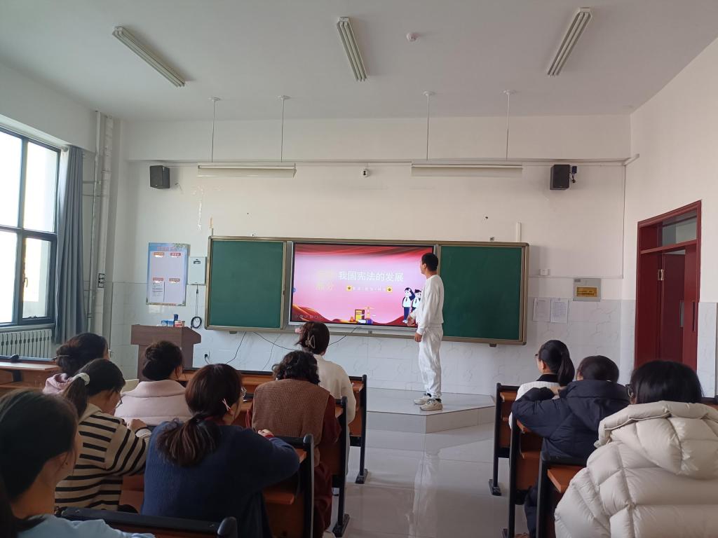 12月3日在燕赵楼211教室,党员教师丁婕以宪法伴我们人生成长的各个阶段的生动的案例和深入浅出的语言,引导大家深入学习宣传宪法知识,让宪法精神深入人心。