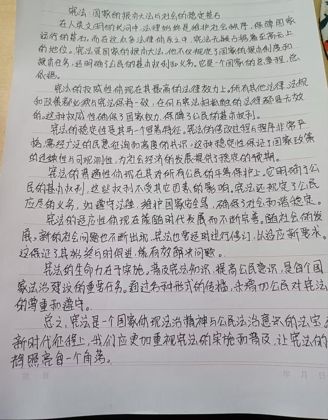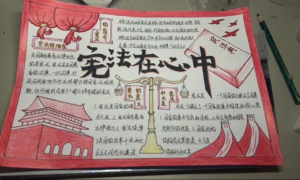 通过“学宪法”征文和手抄报活动,让更多的学生参与其中,广泛地学习和宣传宪法,让宪法精神深入到学生心中。