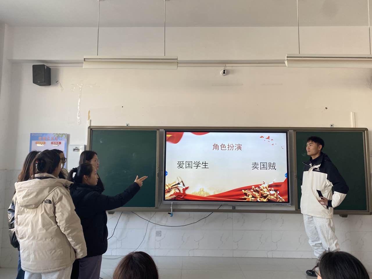 在历史情景剧《救亡之路》播放过程中,大家一起观看故事情节,随后万晓娟等10名青年老师分别扮演了剧中的角色,再现了“一二·九”爱国运动的故事,漫长的岁月尘封了多少动人的往事,无情的时间磨灭了多少心酸的记忆,表达出青年教师热爱祖国的情怀。