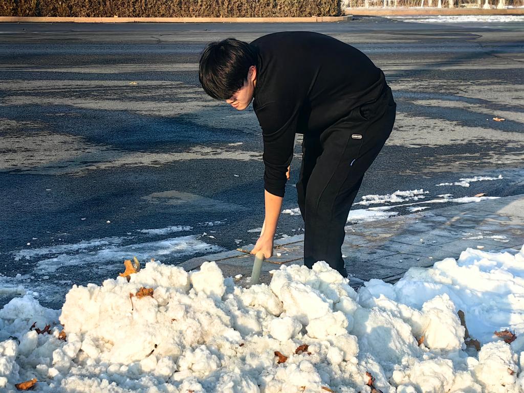 2024级机械制造及自动化1班团员代表岳育辰说道:“这场雪虽然带来了美丽的雪景,但确实给大家的出行造成了困难。作为团员,能在党员老师和学长学姐们的带领下参与到除雪工作中,我深感自豪。在除雪过程中,我看到党员们不怕吃苦、冲锋在前,他们的奉献精神深深感染着我们。每铲除一片积雪,每清扫出一条道路,都让我体会到服务他人的快乐与意义。通过这次活动,我们团员与党员之间的联系更加紧密了,也让我更加明确了自己的责任与担当,今后我会更积极地参与到学院的各项服务活动中。”