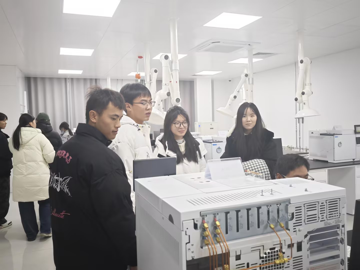 之后,在企业人员的带领下,同学们有序参观了企业的150中控室和检验中心。在中控室,同学们亲眼目睹了现代化的生产监控系统如何高效地指挥着整个生产流程,感受到了科技在化工生产中的强大力量。在检验中心,先进的检测设备和严谨的质量管理体系让同学们深刻认识到产品质量把控的重要性。