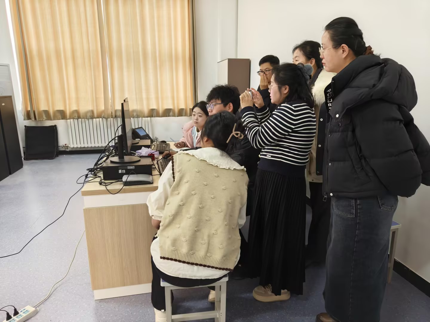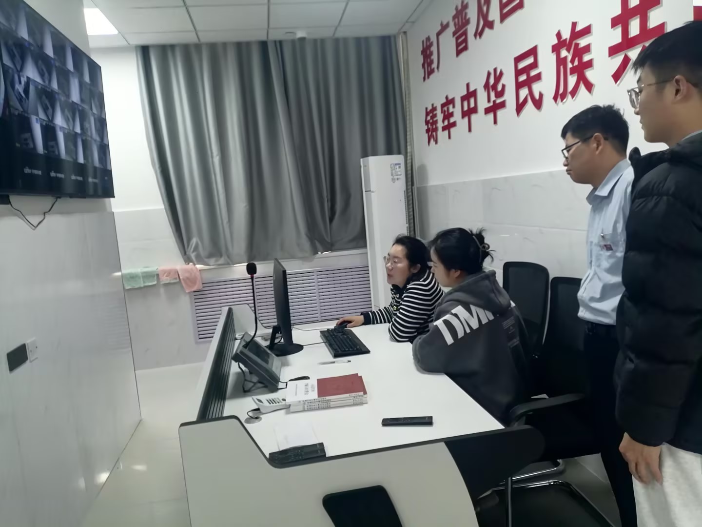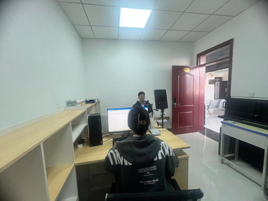 2月18日在燕赵楼5楼测试站,软件技术工程师对即将投入使用的普通话水平测试软件进行了全面细致的调试,确保系统能正常使用。针对人像采集及身份证识别软件,为公共基础学院语言文化组8名教师开展专业测试培训,详细讲解软件的操作流程和注意事项。