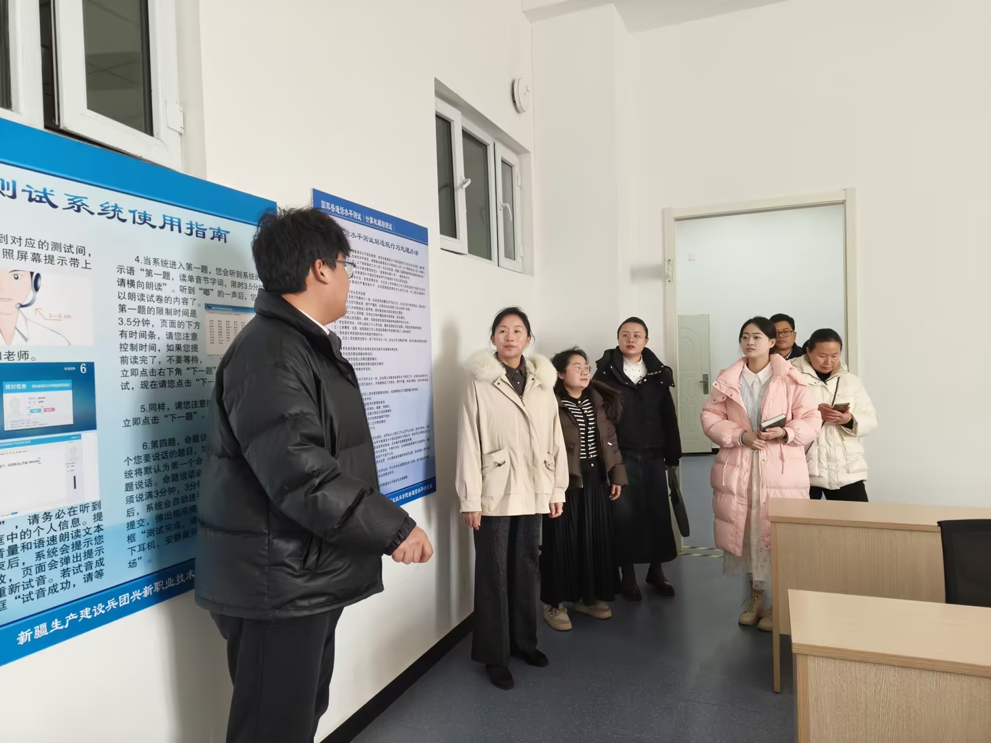 2月21日上午,公共基础学院语言文化组7名老师赴兵团兴新职业技术学院普通话测试站参观学习,在负责人葛畅老师的陪同下,大家参观了测试站的候考区、备考区和测试区。同时,葛老师分享了兵团兴新职业技术学院在普通话测试工作中的经验和做法,大家纷纷表示,参观交流为即将开展的普通话测试工作提供了宝贵经验。