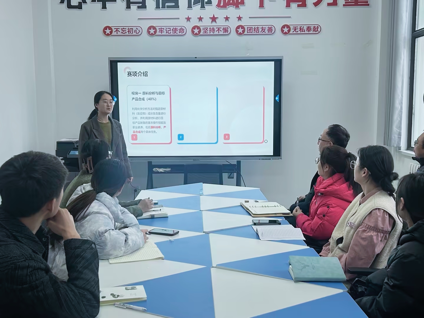各赛项指导老师分别分享了此次参与化工生产技术、化学实验技术、现代化工HSE技能三个赛项过程中的优势、存在的问题以及心得和反思。他们表示,学院目前各项赛事设备齐全,为大赛的高效训练奠定了坚实的基础,但也存在经验缺乏、抗压能力差、缺乏系统的训练计划等问题。