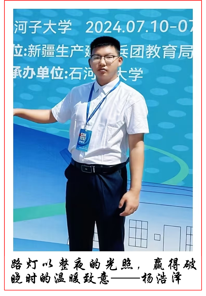在校园的求知天地与实践前沿,杨浩泽仿若熠熠生辉的明星,凭借出类拔萃的表现、矢志不渝的信念和持之以恒的努力,挥毫泼墨,绘就独属于自己的耀眼华章,实至名归地成为同学们心目中的卓越榜样。