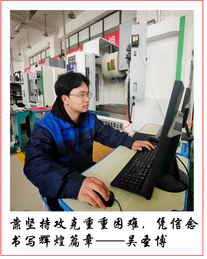 在职业教育的舞台上,吴圣博宛如一颗冉冉升起的新星,以坚定的信念、顽强的毅力和卓越的技能,在模具数字化设计与机械产品数字化设计等领域闯出一片属于自己的天地,用汗水与努力书写着熠熠生辉的个人事迹。