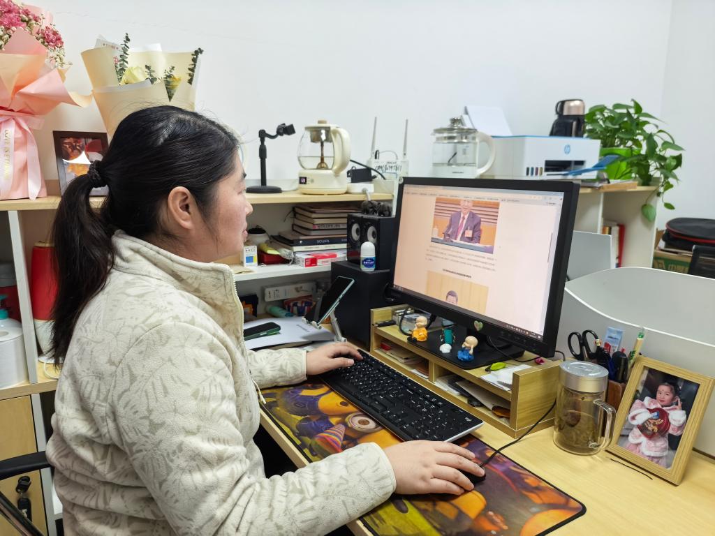 马克思主义学院思政课教师陈录琴:“我们要积极响应全国两会号召,推进大中小学思政课一体化改革创新。在教学中,将全国两会中关于国家战略、社会发展、教育等方面的重要论述融入思政课教学过程中,通过案例教学、小组讨论等形式,引导学生将个人理想与国家发展紧密结合,培养有担当、有责任感的时代新人,为实现中华民族伟大复兴的中国梦贡献力量。”