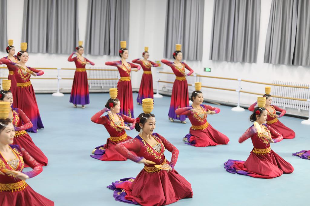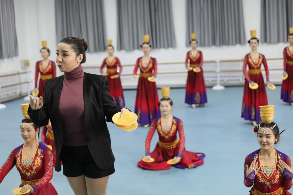 古丽巴娜·依明老师以其深厚的舞蹈功底和丰富的教学经验,对舞蹈的每一个细节都进行了精心雕琢。她强调,舞蹈不仅是身体的律动,更是情感的传递。在指导过程中,她特别关注学生们对舞蹈道具碗的运用,以及舞蹈旋转技巧的掌握。她指出,每一个动作,都应蕴含情感,面部表情和眼神的运用,是增强舞蹈表现力的关键。对于节奏的把握和动作速度的调整,她也给出了精准的建议,确保舞蹈的流畅性和感染力,帮助学生准确传递维吾尔族女性"古丽"特有的温婉与热情。