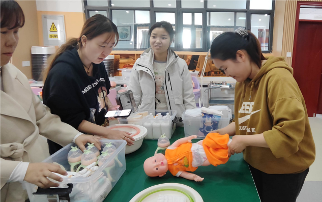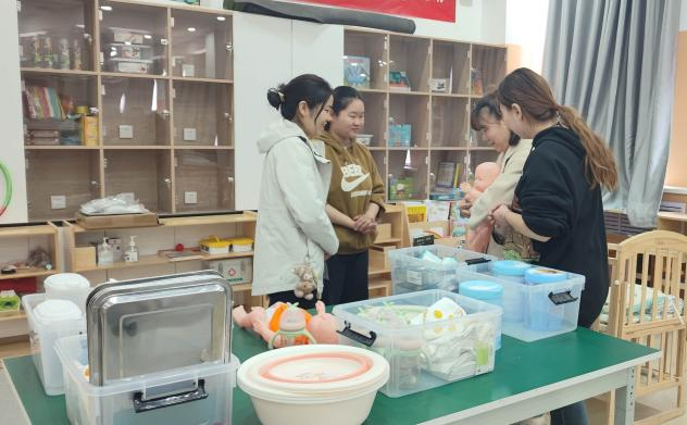 活动伊始,双方围绕兵团第十届育婴员技能大赛的备赛情况展开了深入的讨论。学院24托育服务与管理专业2班学生蒋明渝向幼儿园的老师们展示了大赛相关赛项的实际操作。随后,幼儿园的教师们也积极参与了操作演练,通过互动,双方在专业技能的提升和比赛准备上取得了实质性的进展。