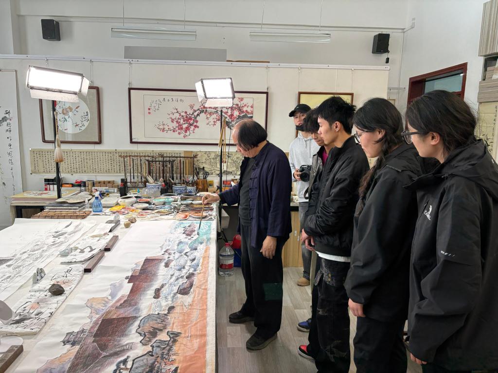 在研讨过程中,张建永教授与教研室教师们深入探讨了国画创作的精髓。他重点就构图布局、笔墨运用和色彩处理等专业技法为社团学生进行了细致指导,通过现场示范与互动交流,帮师生们提升艺术表现力。张教授特别强调国画艺术作为中华文化瑰宝的重要价值。他指出,每一幅画作都承载着历史记忆与文化基因,艺术创作的过程本身就是对文化遗产的传承与发扬。他希望通过这样的专业交流,能够深化艺术教育工作者对传统文化的理解,进而在教学实践中更好地传播中华美学精神。
