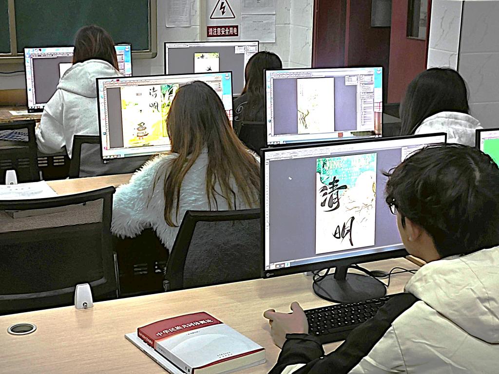 4月1日,bat365在线中国官网登录入口信息智能工程学院在《图形图像处理》课堂开展清明节主题实践教学活动,将传统文化融入专业课程教学,24数字媒体3班学生在教师指导下,通过设计创意海报实现专业技能训练与文化传承的双向融合。