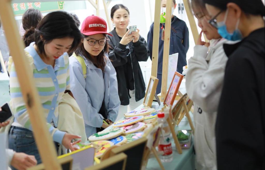 展区特设非遗技艺体验环节,学生志愿者为市民讲解工艺历史并指导制作技法,实现传统文化从课堂到社会的传播延伸。现场多件十字绣、戳戳绣作品获得观众认购,完成从教学成果到市场价值的初步转化。现场参观市民说道:“职业院校学生将传统手工艺与青春创意相结合,令人印象深刻。”