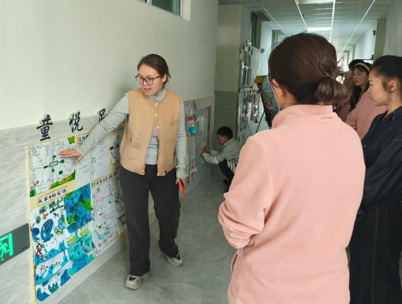 在库尔勒市第七幼儿园教研活动中,园长靳璐向学院教师介绍了以项目式教学为核心的实践探索。该园通过安吉游戏、Steam活动和项目式教学,构建以幼儿为中心的体验式学习模式,注重培养创新思维与协作能力。重点展示了以库尔勒市湿地公园为实践场景设计的项目式活动,强调通过引导幼儿从已有经验出发,分阶段推进实践探究,促进认知能力与自主学习能力提升。双方就教学实施细节、幼儿参与度及成效评估展开交流。