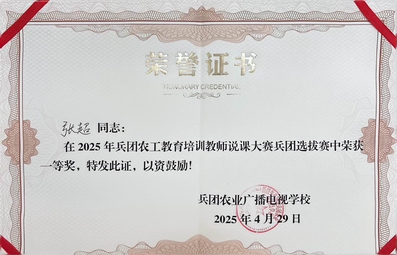 该奖项既是教师个人专业能力的体现,也彰显了学院教育教学改革成效。下一步,学院将以此次获奖为契机,持续深化教学创新实践,为兵团高素质农工培育提供坚实人才支撑。