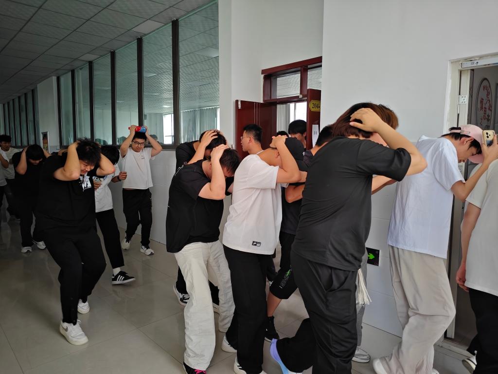 演练前,学院与警务室成立联合指挥组,制定详细预案,明确职责分工。民警与教职工围绕“紧急避险”“疏散路线”等环节进行多次推演,确保流程无缝衔接。各班级通过主题班会学习地震防护知识,包括护头姿势、安全撤离要点及疏散后集合规范。