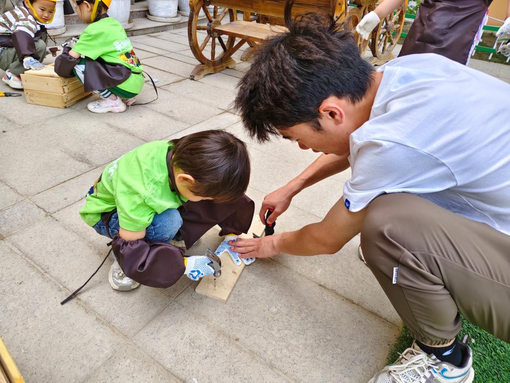 在幼儿园,学生们深度参与了特色区角活动,如花园探索、小木工实践、民族服饰制作等。这些活动既展现了学生的创新思维,也体现了幼儿园教师专业化的教学引导能力。通过观察与实践,学生们掌握了如何结合幼儿年龄特点设计活动,并巧妙融入教育目标,促进儿童认知与身心协调发展。