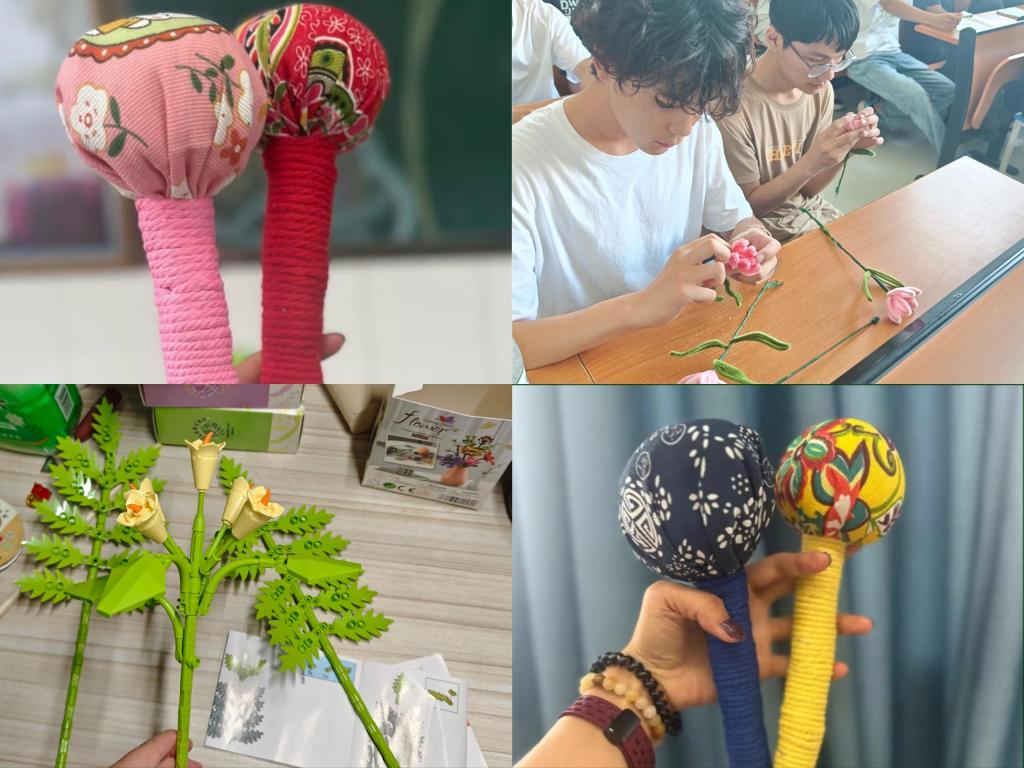 在趣味问答环节,通过“父亲的生日是哪天?”“他最爱吃的菜是什么?”等贴近生活的问题,引导在场学生反思对父亲的了解程度。现场互动中,少数学生能准确说出父亲的生日,这一发现促使部分学生现场拨通电话向父亲表达感恩之情。在礼物展示环节,学生们展示了精心制作的手工花束、艾草锤等礼物,表达对父亲的深情祝福