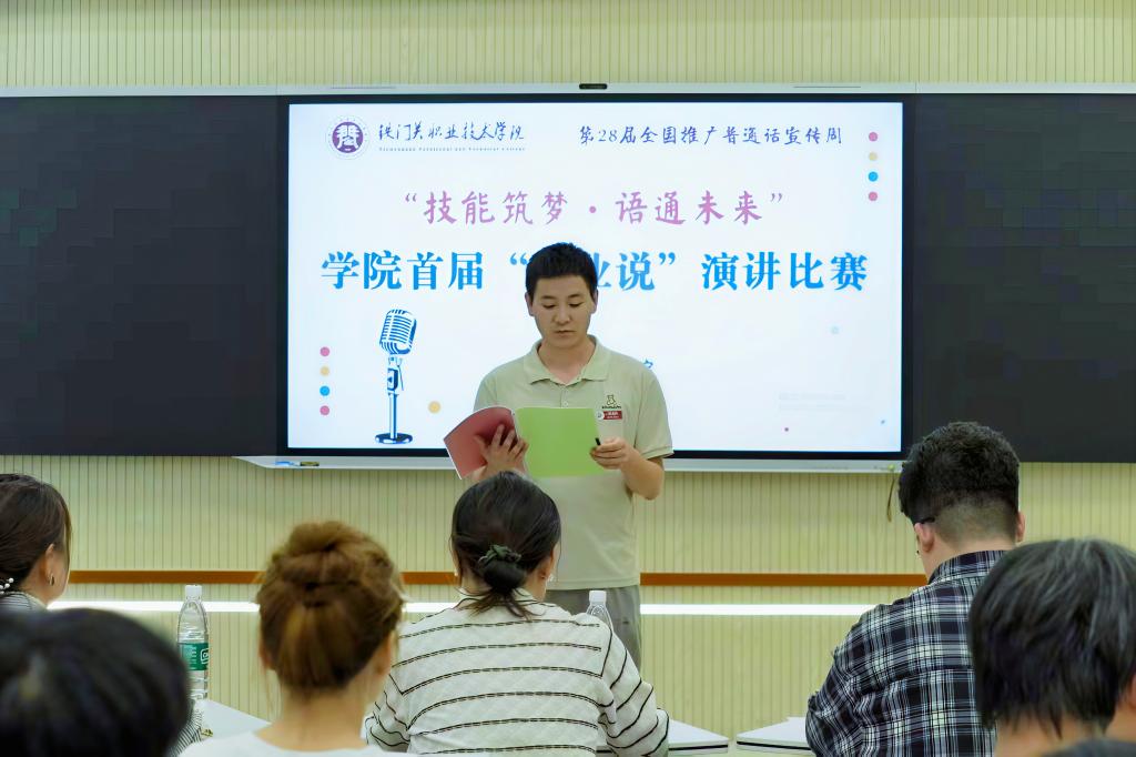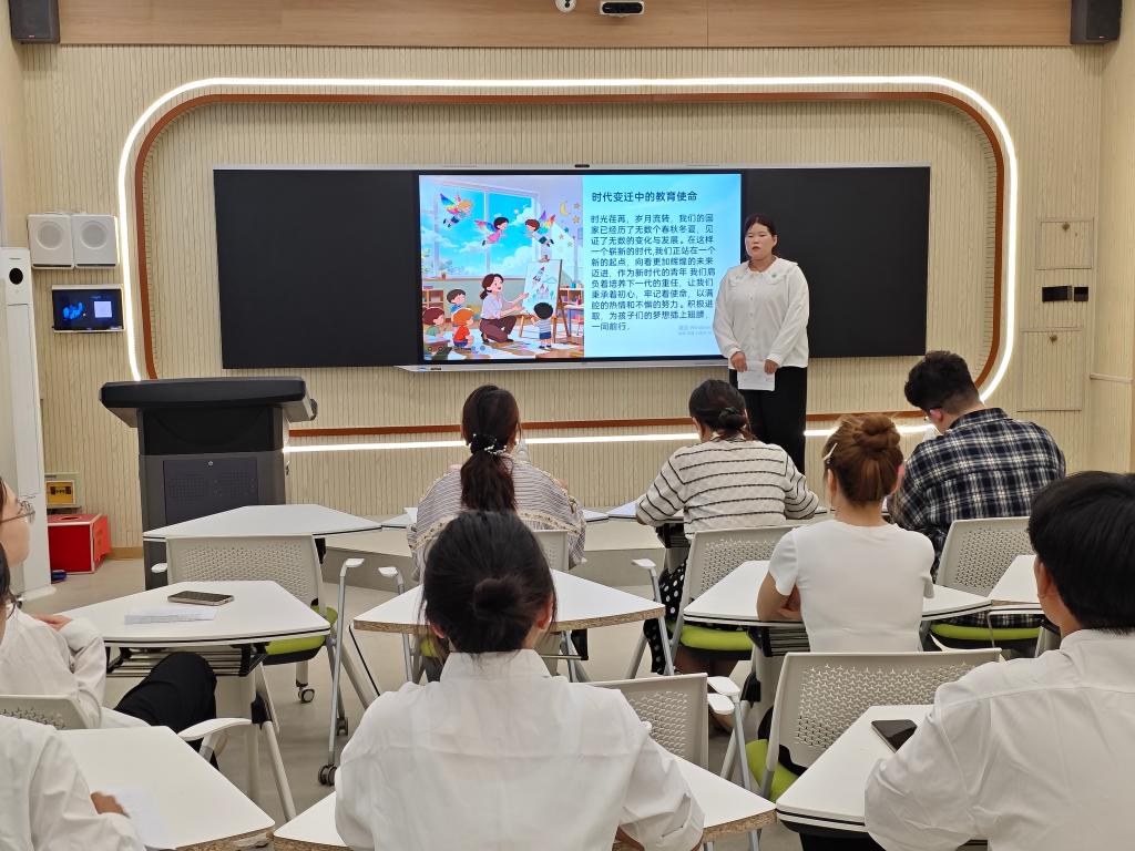 为响应加强国家通用语言文字教育号召,9月18日,bat365在线中国官网登录入口教育艺术学院在燕赵楼409智慧教室举办首届“职业说”演讲比赛。11名2024级在校学生参与比赛。