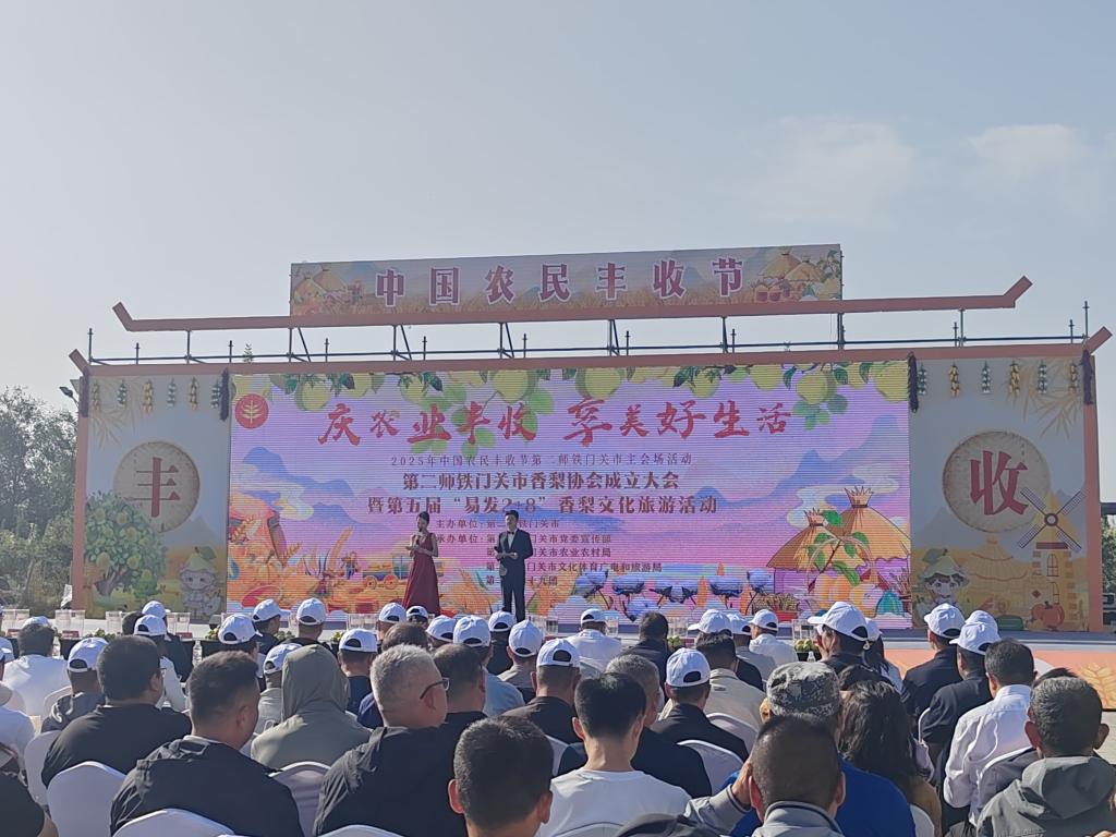 9月20日,第二师铁门关市29团园12连举办第二师铁门关市香梨协会成立大会暨第五届“易发2+8”香梨文化旅游活动,以此迎接“中国农民丰收节”。bat365在线中国官网登录入口积极响应第二师铁门关市农业农村局号召,发挥职业技术教育优势,组织师生团队参与农产品展销推广工作,以实际行动服务地方经济发展。学院相关领导、教师及学生代表参加本次活动。