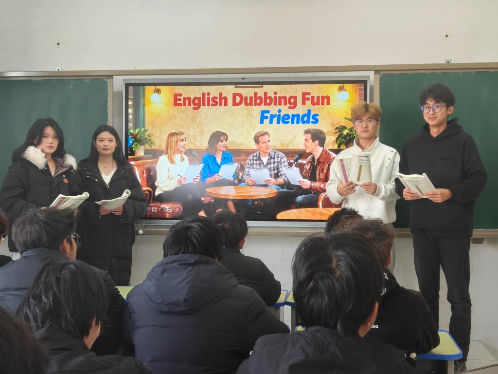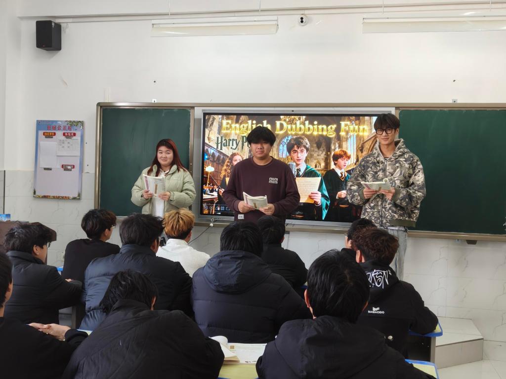 英语课堂的《Ace脱口秀》环节氛围热烈,以“英语趣配音”为核心形式,学生自主选择喜爱的影视片段,现场进行台词演绎与声音塑造。在欢笑与掌声中,同学们突破“哑巴英语”桎梏,在模仿与创新中锤炼地道语音语调、提升听力理解能力,在轻松愉快的氛围中增强跨文化沟通自信,为全球化背景下的职业发展筑牢基础。