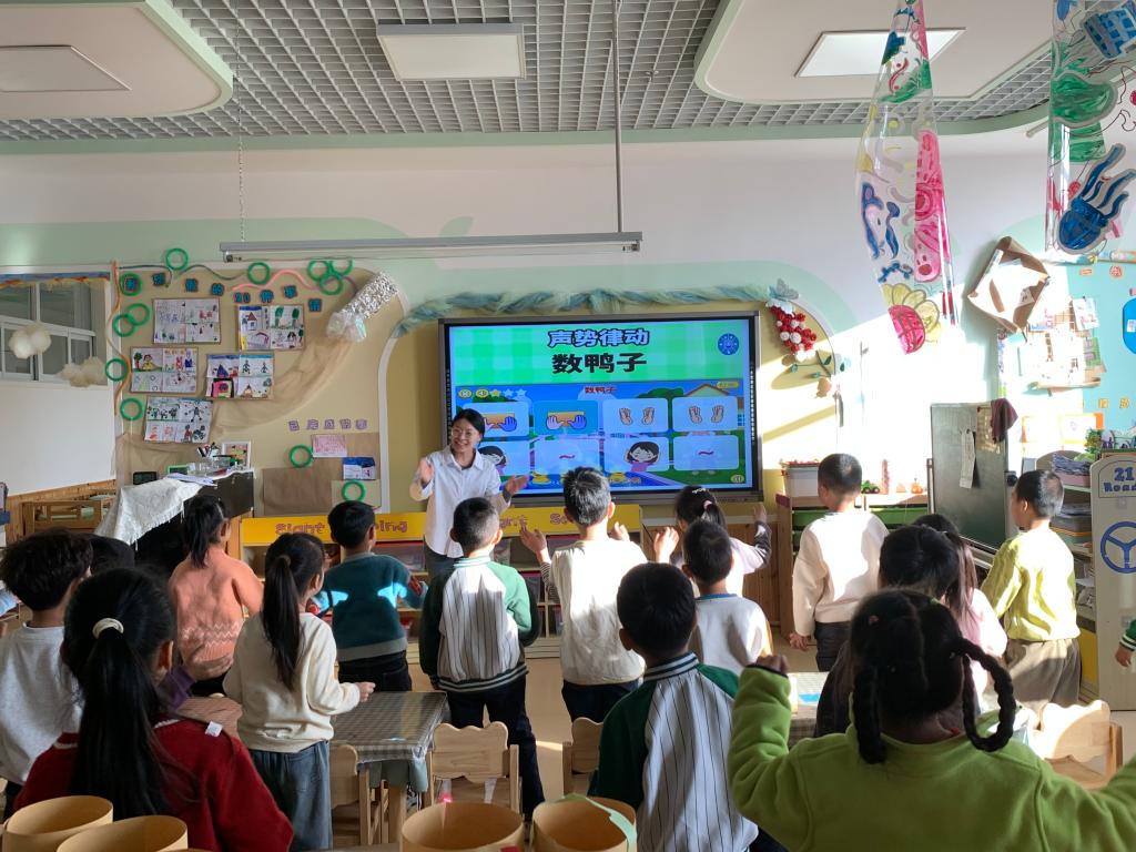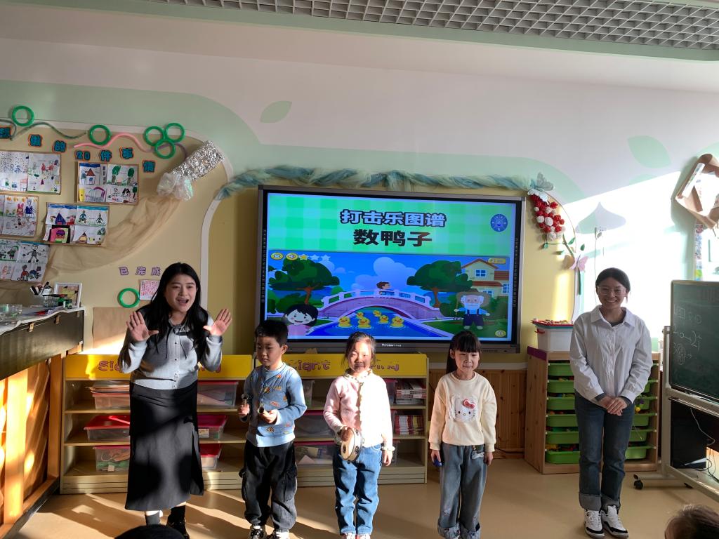 活动中,李娜、贾欣两位教师深入幼儿园课堂与活动现场,全程参与幼儿音乐教学实施、特色活动设计等工作。两位教师结合高校音乐教育专业优势,针对幼儿年龄特点与认知规律,带来了趣味十足的节奏游戏、儿歌创编等教学体验,用生动活泼的教学方式激发幼儿音乐兴趣;同时与幼儿园教师围绕课程设计、教学方法创新、幼儿艺术素养培养等问题展开深入交流,分享高校音乐教育的前沿理念与实践经验,为幼儿园音乐教育注入专业活力。