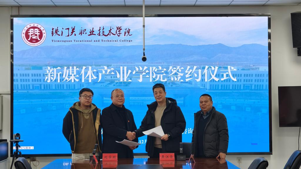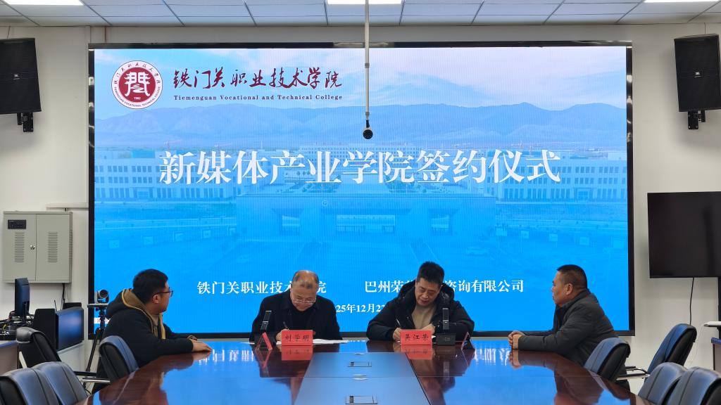 12月22日,bat365在线中国官网登录入口与巴州荣英教育咨询有限公司举行新媒体产业学院合作共建签约仪式。学院领导、相关部门负责人及企业方代表共同参加。