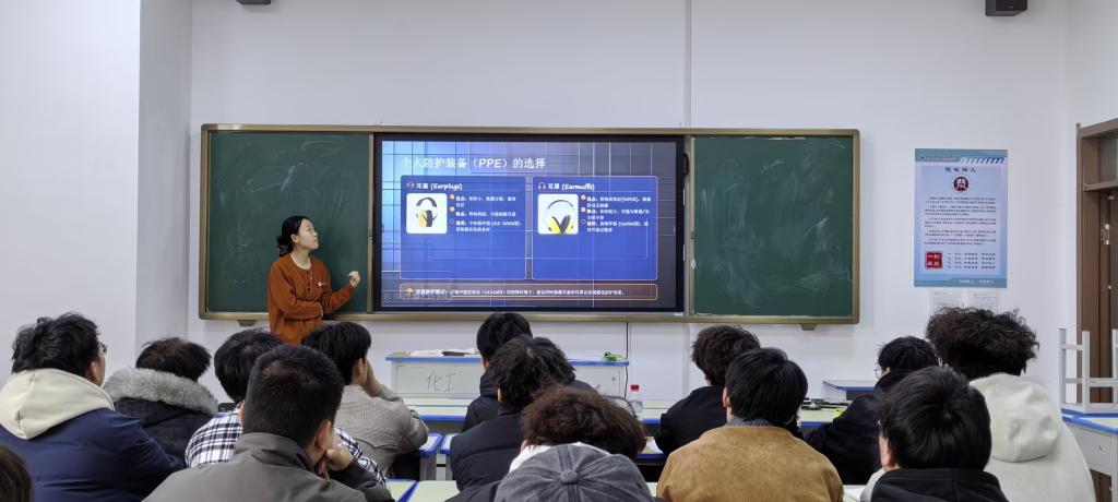 活动中,学生们积极参与互动,认真学习了耳塞、耳罩等个人防护装备的正确选择与佩戴方法。25级应用化工技术1班张迪同学表示:“此次活动内容实用、针对性强,不仅纠正了以往在听力保护方面的认知误区,更深刻认识到职业性听力防护对于化工从业者的重要意义。”