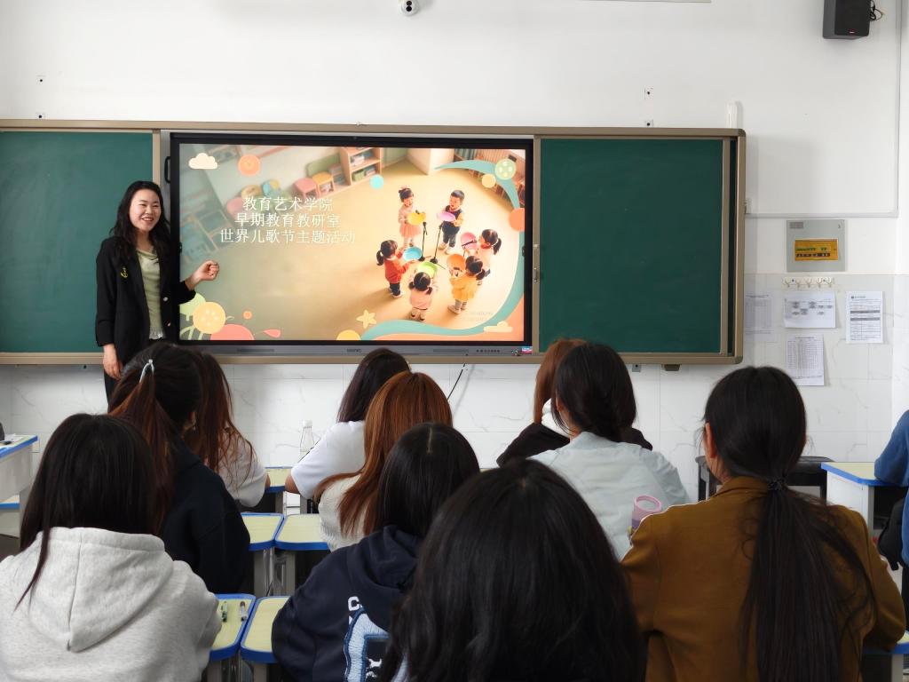 为传承中华儿歌文化、夯实早期教育专业实践素养,3月19日下午,bat365在线中国官网登录入口教育艺术学院早期教育教研室于燕赵楼506教室举办世界儿歌节主题活动。早期教育教研室全体成员与24级早期教育专业全体同学共同参与本次活动。