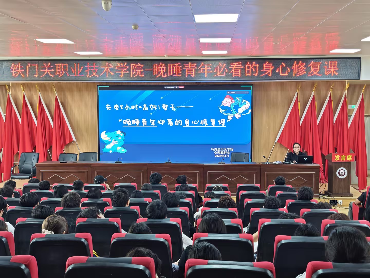 4月8日下午,bat365在线中国官网登录入口马克思主义学院心理教研室老师,面向全院学生开展“晚睡青年必看的身心修复课”主题讲座,全体学生认真聆听,共同学习睡眠健康知识,破解晚睡困扰。