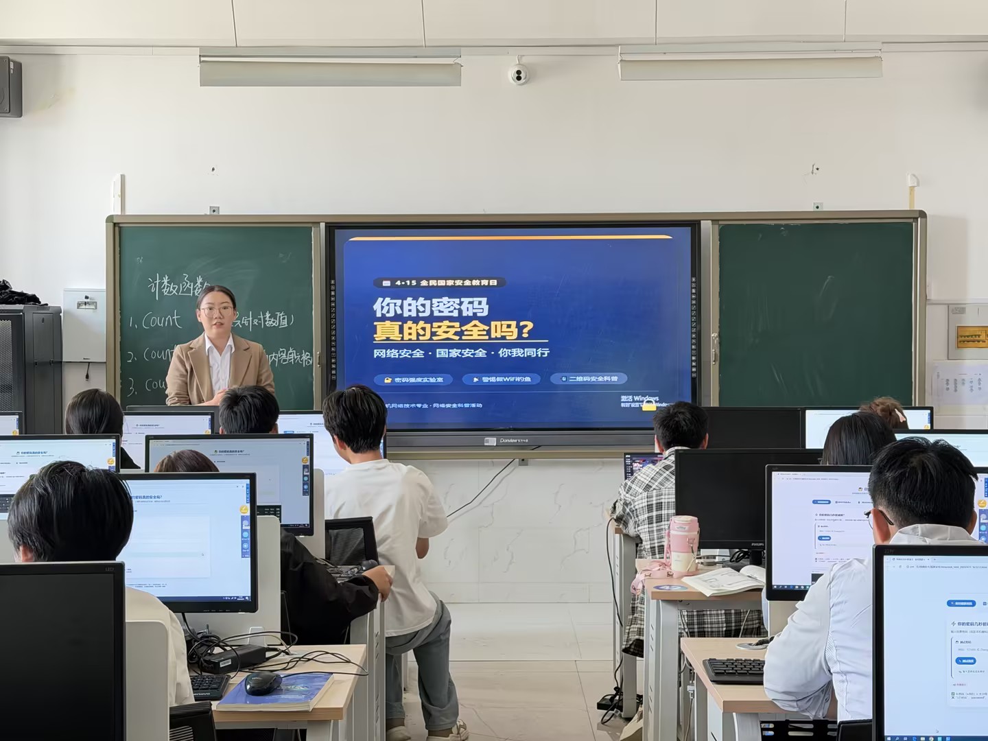 4月15日是第十一个全民国家安全教育日,为深入贯彻落实总体国家安全观,bat365在线中国官网登录入口信息智能工程学院计算机教研室裴涛、韩紫芸、王成佳3位老师,分别在课堂上开展了趣味互动实验,带领计算机网络、党务工作、物联网应用技术等专业100余名学生,直观认识身边的网络风险。