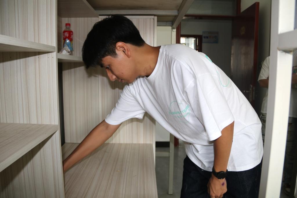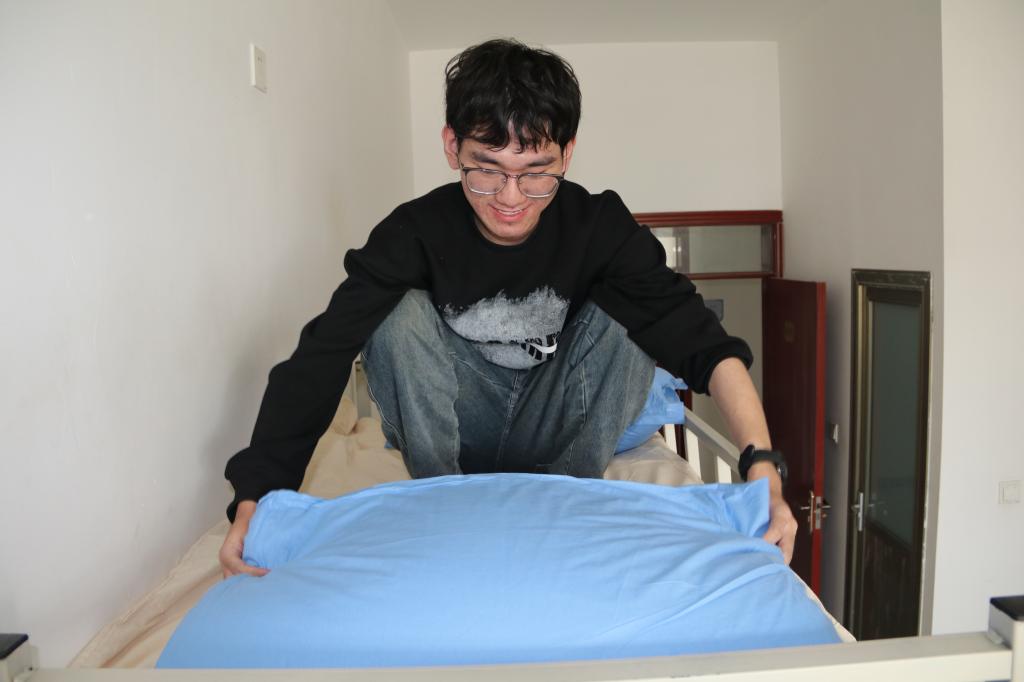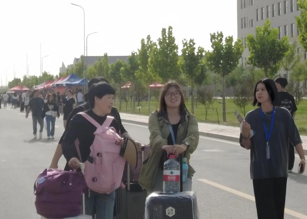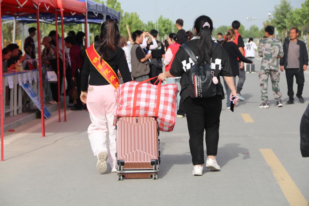 宿舍楼前井然有序的队伍,是新生们在统一领取床上用品,在老师和学长学姐的帮助下,搬入新宿舍,这将是新生们未来几年学习生活的“家”。