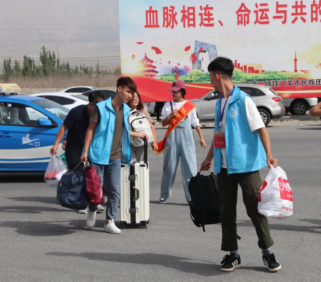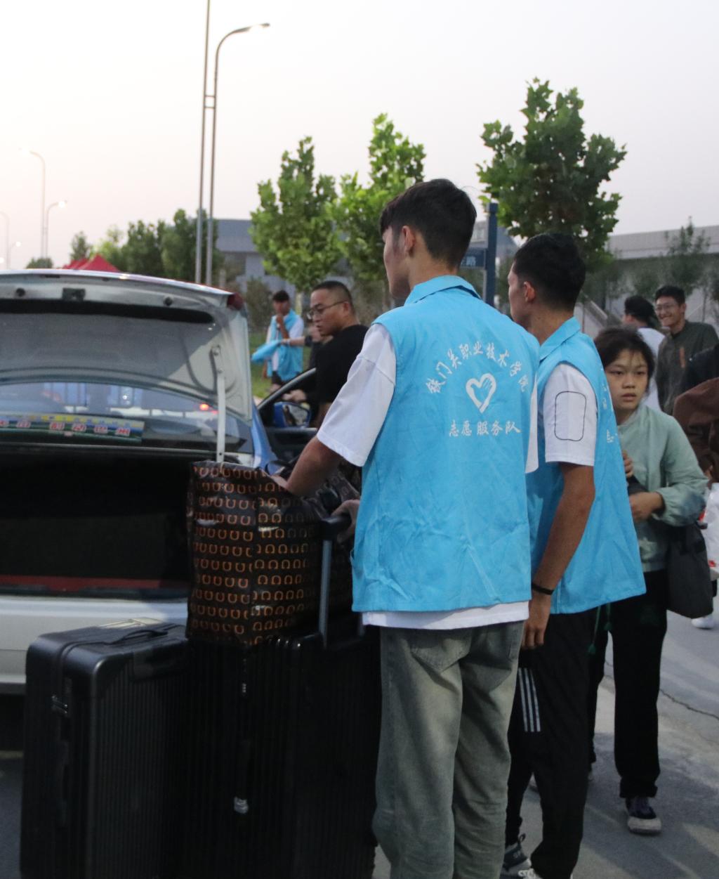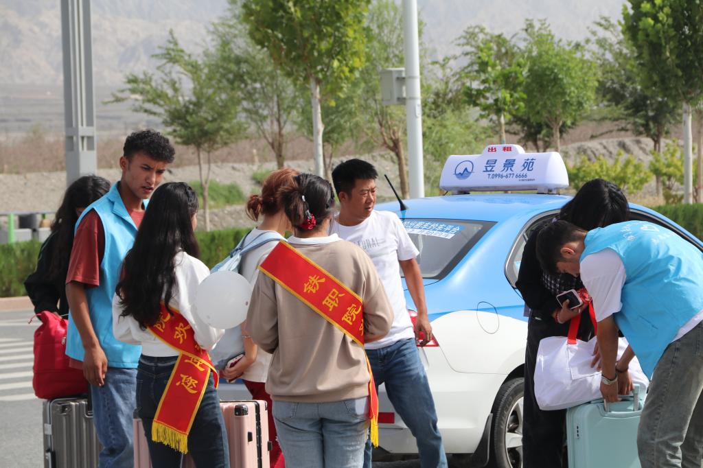 11日凌晨,教师们就带着2022级学生志愿者提前赶到火车站、飞机场迎接新生的到来,用他们的热情让新生们感受到家一般的关怀。