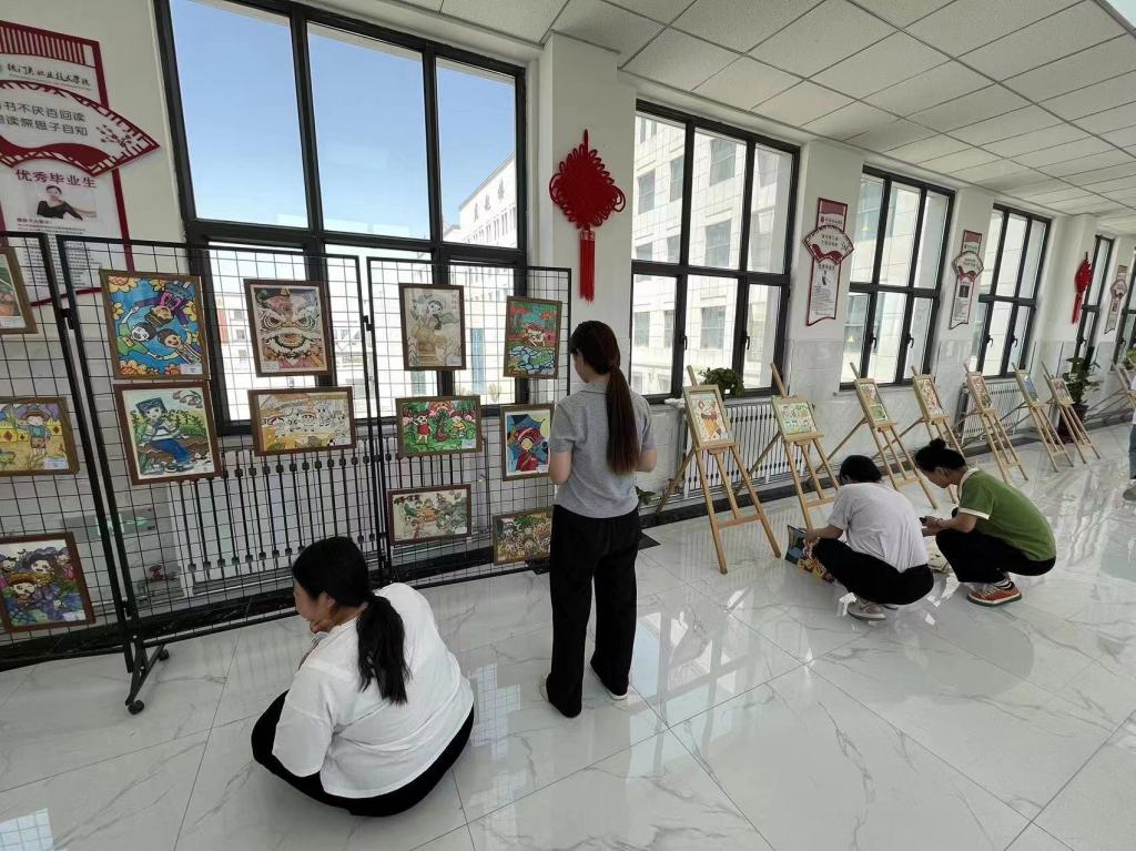 现场共征集展出教育艺术系各民族师生作品百余幅,作品类型涵盖剪纸、水彩、中国画、油墨画等,作品题材丰富、形式多样、风格鲜明,充分展示了学院学子较高的艺术素养和扎实的美术功底。展出期间,一幅幅精美的书画作品吸引了各系师生驻足欣赏、品味,观者络绎不绝,成为一道靓丽的风景。