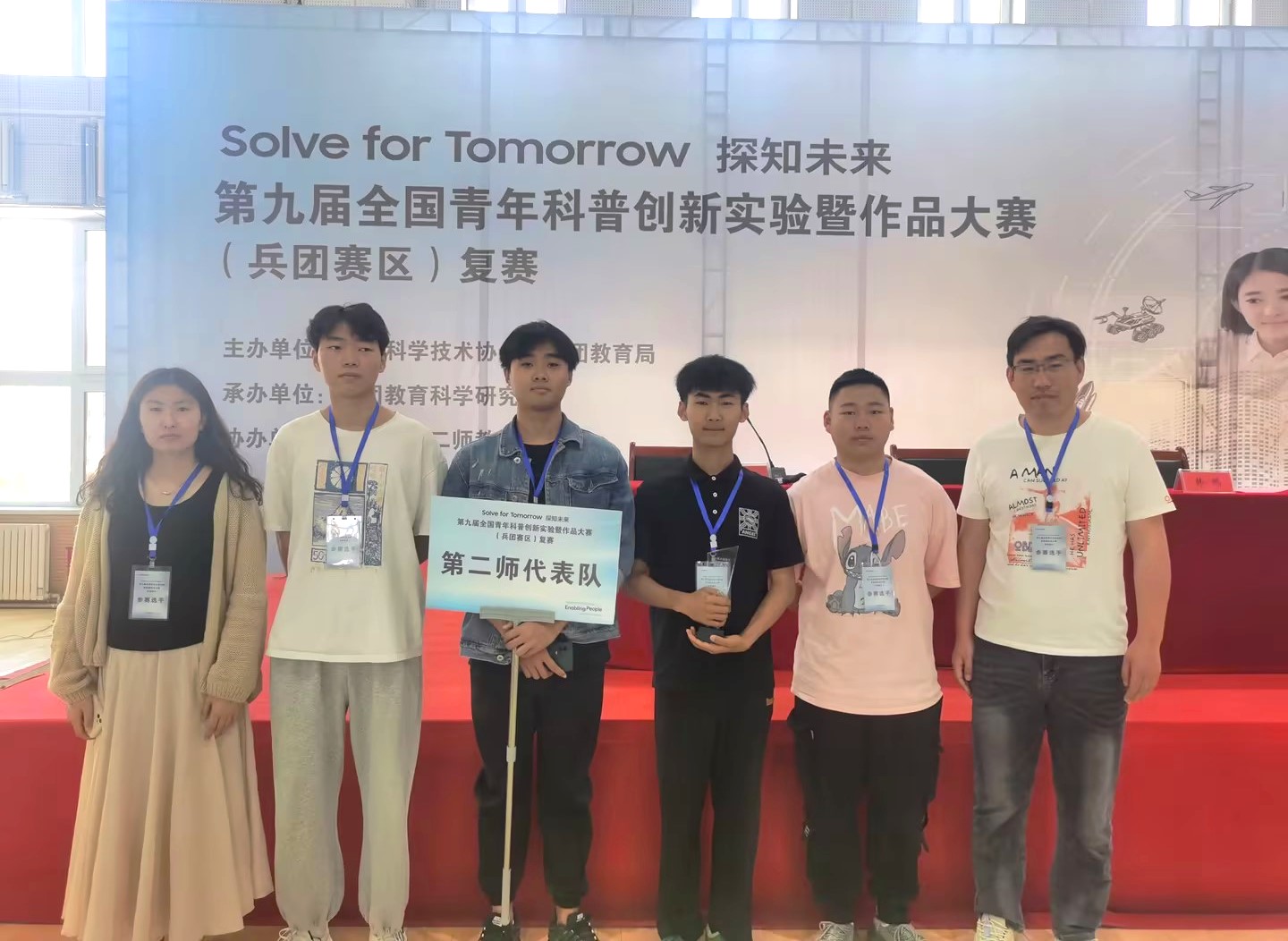 6月4日,在全国青年科普创新实验暨作品大赛(兵团赛区)复赛中,第二师代表队,bat365在线中国官网登录入口机械工程系教师宋春雨指导的范梁彬、李嘉伦团队作品“智能车篷”荣获一等奖并入围大赛国赛;董树华指导的董嘉程、邓志豪团队作品“多功能娱乐健身器”荣获优胜奖。