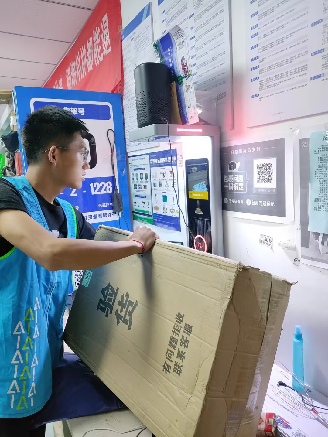 “物品摆放整齐,位置明确。”这是他一直以来对驿站工作最基本的要求。驿站工作人员忙碌的一天,从快件消杀、粘贴取件码、摆放快递到指引学生们领取快递开始。“请大家有序排队取件”“请在指定地点拆除快递外包装”……一句句暖心的提醒不断重复着,引导师生文明安全寄取快递。