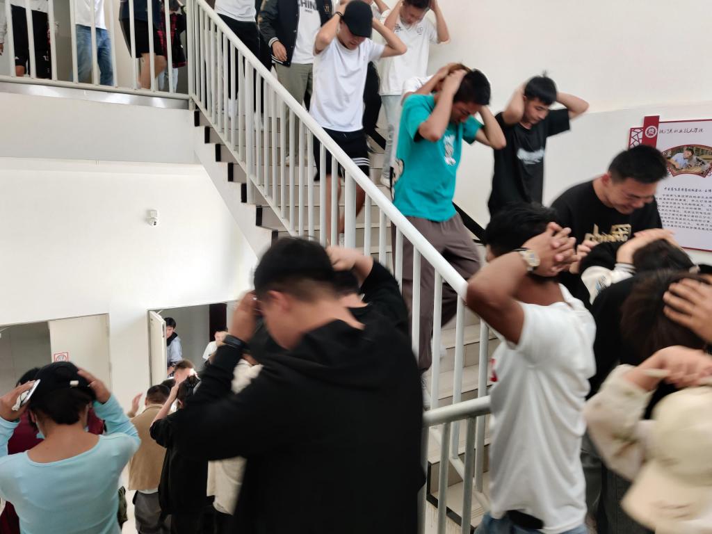 在防灾减灾日当天,后勤管理服务中心和机械工程系联合开展了防震应急演练。活动开始前,各班班主任详细讲解了防震减灾知识和疏散撤离的注意事项。活动过程中,同学们展现出良好的自救自护能力,快速有序地从各班级撤离到应急疏散场地,整个过程持续5分钟。