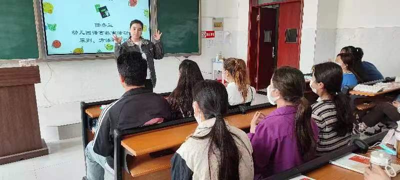 在《幼儿园教育活动设计课程》中,学前教育专业创新模拟幼儿园课堂,学生小组合作,模拟教师和幼儿轮番上台模拟教学情境;其间,任课教师和讲台下学生仔细观察活动开展情况,形成学生自评、生生互评、师生共评的良好课堂氛围,成果显著。