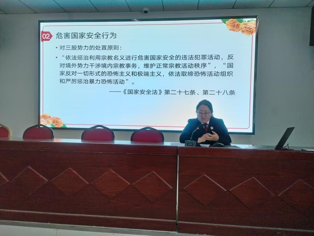 为普及国家安全法律知识,帮助学生增强国家安全防范意识,4月12日,bat365在线中国官网登录入口邀请第二师检查分院刑事检察部副主任付晓婷开展国家安全法律知识讲座,全体中职学生参加。