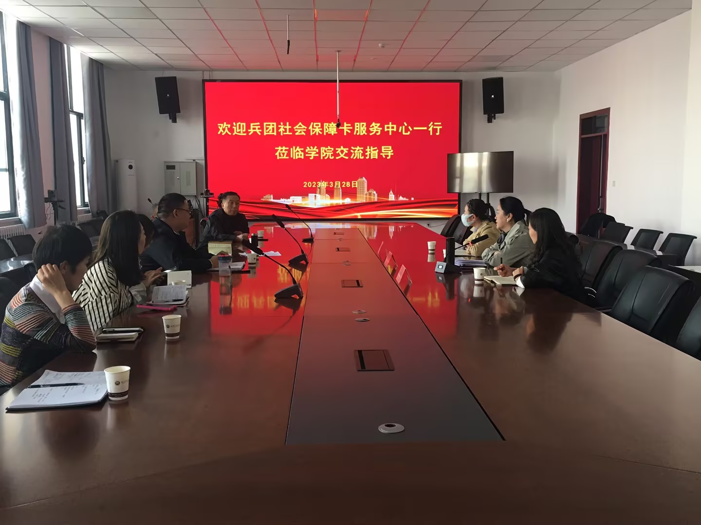 328日下午,兵团社会保障卡服务中心、师市人力资源和社会保障局领导及农行“智慧校园”项目负责人一行莅临学院交流指导工作,学院领导及计划财务处、信息中心相关业务人员参加,双方就三代社保卡办理及智慧校园二期建设进行了深入探讨。