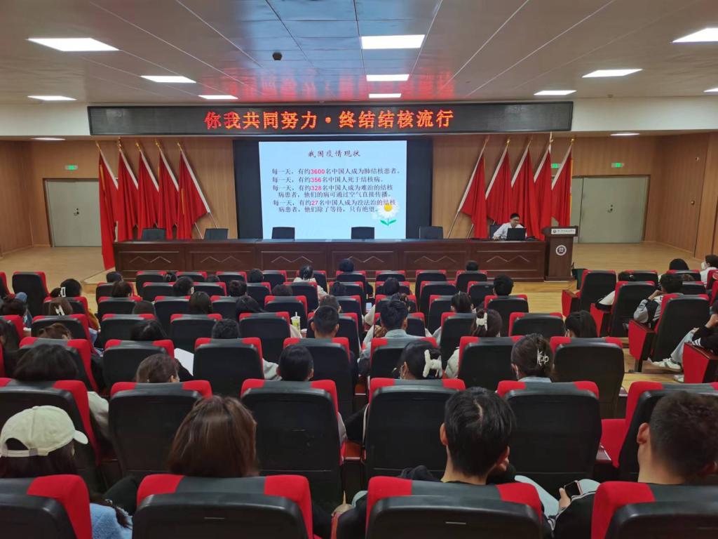 二师疾控中心赵秀峰医生以“你我共努力·终结结核流行”为主题,从我国结核病的现状到结核病流行的风险以及结核病的起源、临床特征、危害、传播途径等进行了详细讲解,结核病可防可治,引导大家加强结核病预防,讲究个人卫生、加强体育锻炼、必要时早期筛查等。随后,学院校医针对一些常见的运动急性损伤类别,从概念、损伤机制、表现、院前处理、预防等方面给大家进行了全面的解析,结合相关临床案例及相关视图资料,更立体、直观的将不同病症表现出来,让同学们更容易理解,也提高了防范意识。