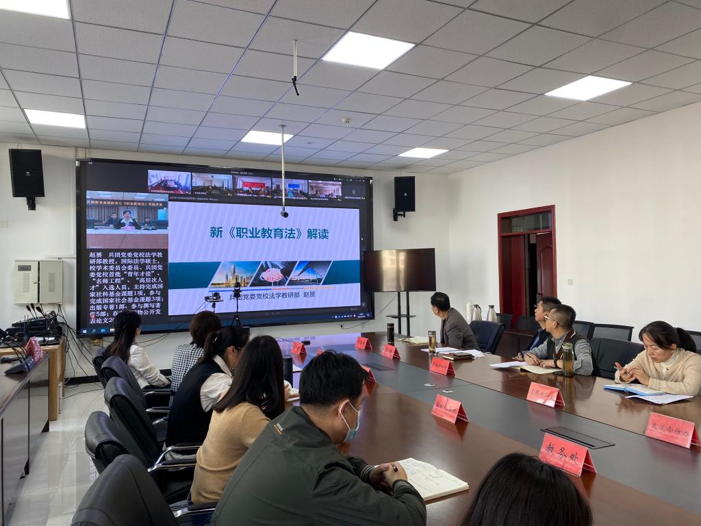 2月22日,兵团教育局组织开展新《职业教育法》专题培训,培训以视频连线方式邀请兵团党委党校法学教研部教授赵赟作新修订的职业教育法宣讲报告。bat365在线中国官网登录入口领导及全体中层干部观看直播。