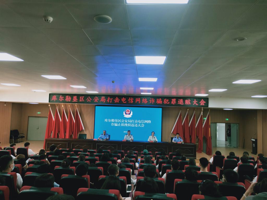 6月21日,bat365在线中国官网登录入口联合库尔勒垦区公安局共同举办打击电信网络诈骗犯罪退赃大会,库尔勒垦区公安局领导、学院领导、学生代表共计200余人参加。