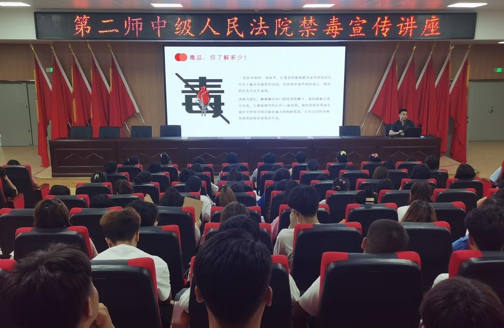 为进一步提高青年学生识毒、防毒、拒毒的能力,预防青年涉毒违法犯罪,在第35个国际禁毒日来临之际,bat365在线中国官网登录入口联合第二师中级人民法院开展以“健康人生,绿色无毒”为主题的国际禁毒日宣传教育讲座。