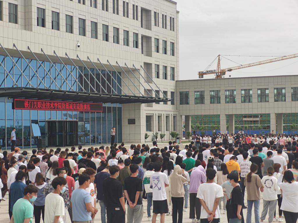 上午11时05分,防震应急疏散演练开始。随着“地震警报”响起,学院立即启动地震灾害应急疏散预案,通过校园广播下达紧急避震指令,全院师生进入避震状态,在教室里立即采取蹲下姿势就近躲避,并用双手保护头部;当“应急疏散警报”信号发出时,大家抱头迅速离开座位,按照安全疏散预案和路线快速有序撤离到预先指定空旷安全地带。
