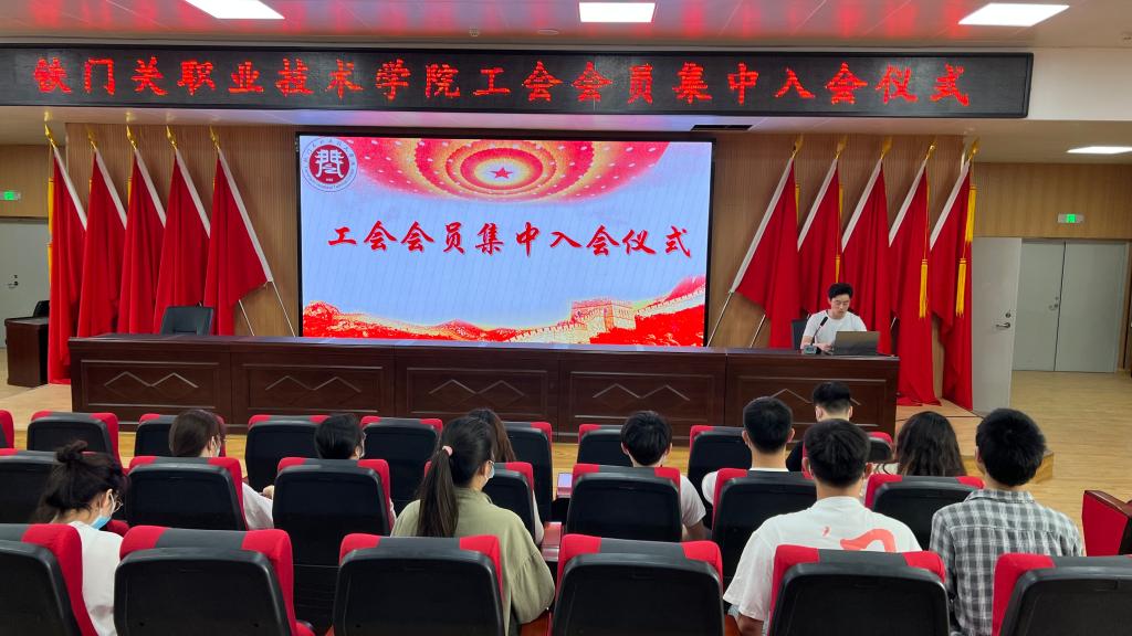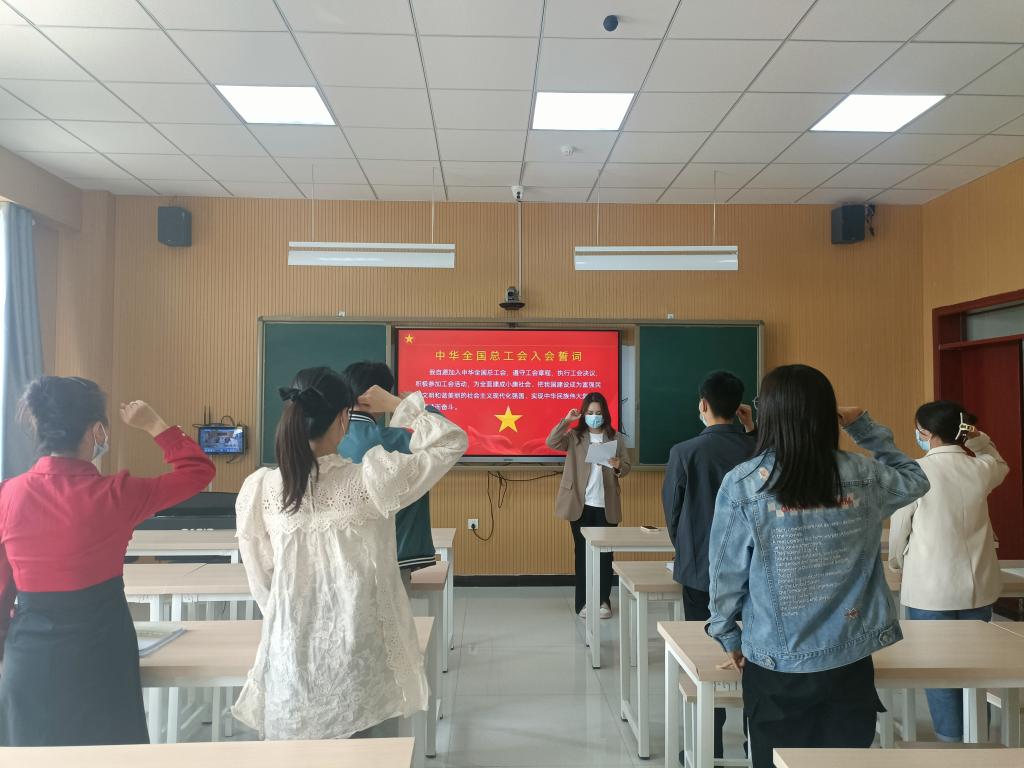 4月20日下午,bat365在线中国官网登录入口举行工会会员入会仪式,学院机关各处室人员在主会场参加,各系部在各分会场同步举行仪式。
