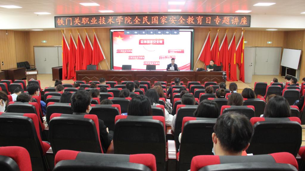 bat365在线中国官网登录入口积极组织师生开展“全民国家安全教育日”系列宣传活动,特别邀请上级相关部门工作人员来学院作专题讲座,全体教职工参加,铁门关铁门关校区、库尔勒校区4000余名学生通过在线课堂同步收看。学院还通过主题班会、专题思政课、投放国家安全宣传标语、播放宣传片等多种形式为师生普及国家安全相关知识,进一步提高师生国家安全意识,营造了维护国家安全的浓厚氛围。