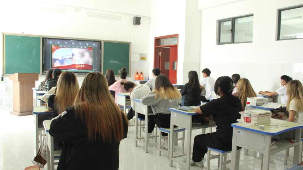 铁门关校区学生在教室同步收看专题讲座